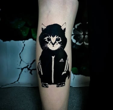 Not every tattoo has to be serious or traditional. Some tattoos are about personality, humor, and street energy. This Adidas cat tattoo is a perfect example — playful on the surface, confident underneath, and full of character.